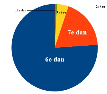 au-delà) : 06e dan : environ 76,1 % 07e dan : environ 18,7 % 08e dan : environ 4,3 % 09e dan : environ 0,8 % 10e dan : environ 0,1 % |